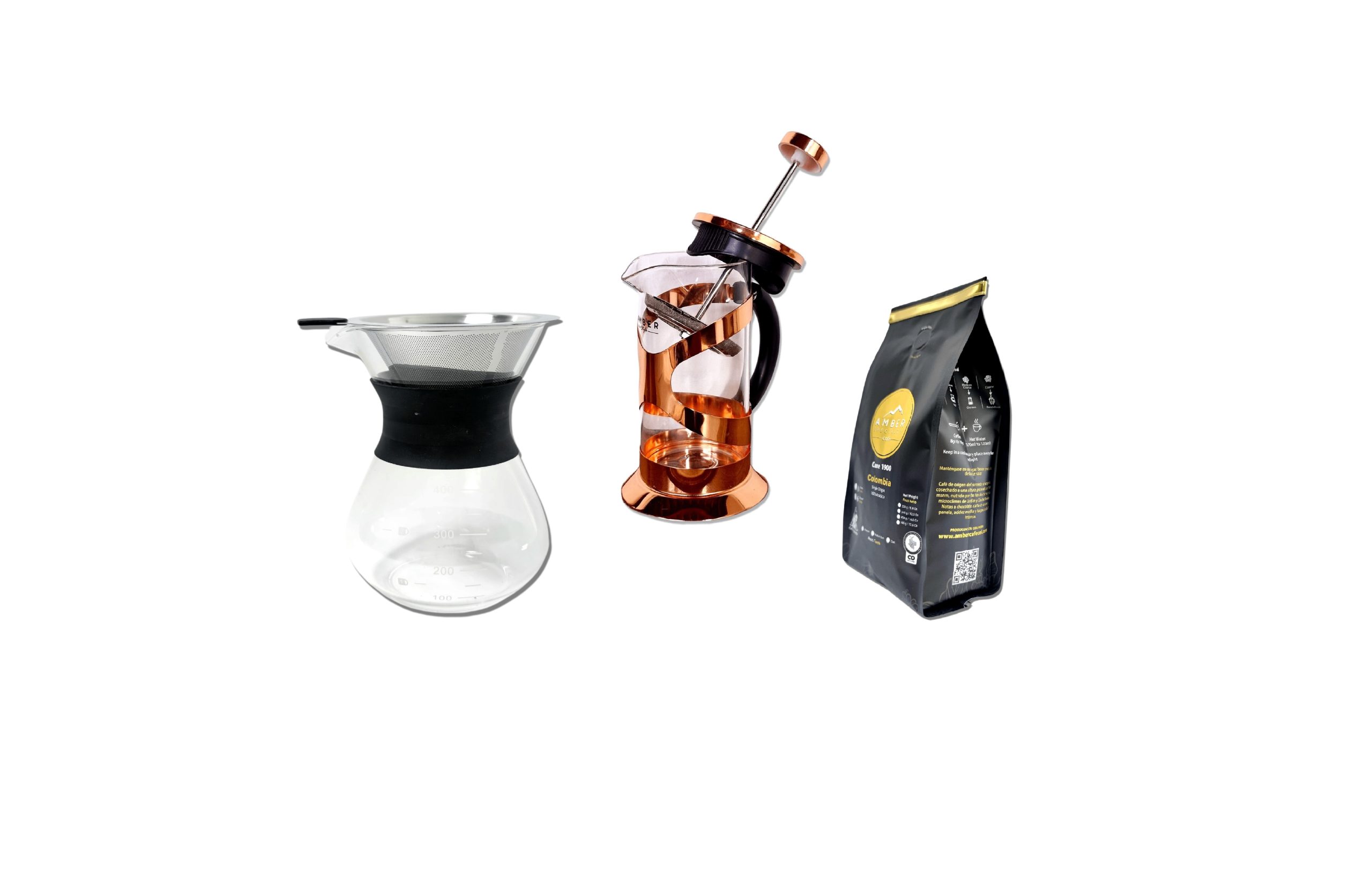 Cada taza se convierte en una celebración de calidad y sabor, con la claridad de la Chemex y la riqueza de la prensa francesa. Disfruta de un café excepcional que transforma tu rutina diaria en un placer gourmet.