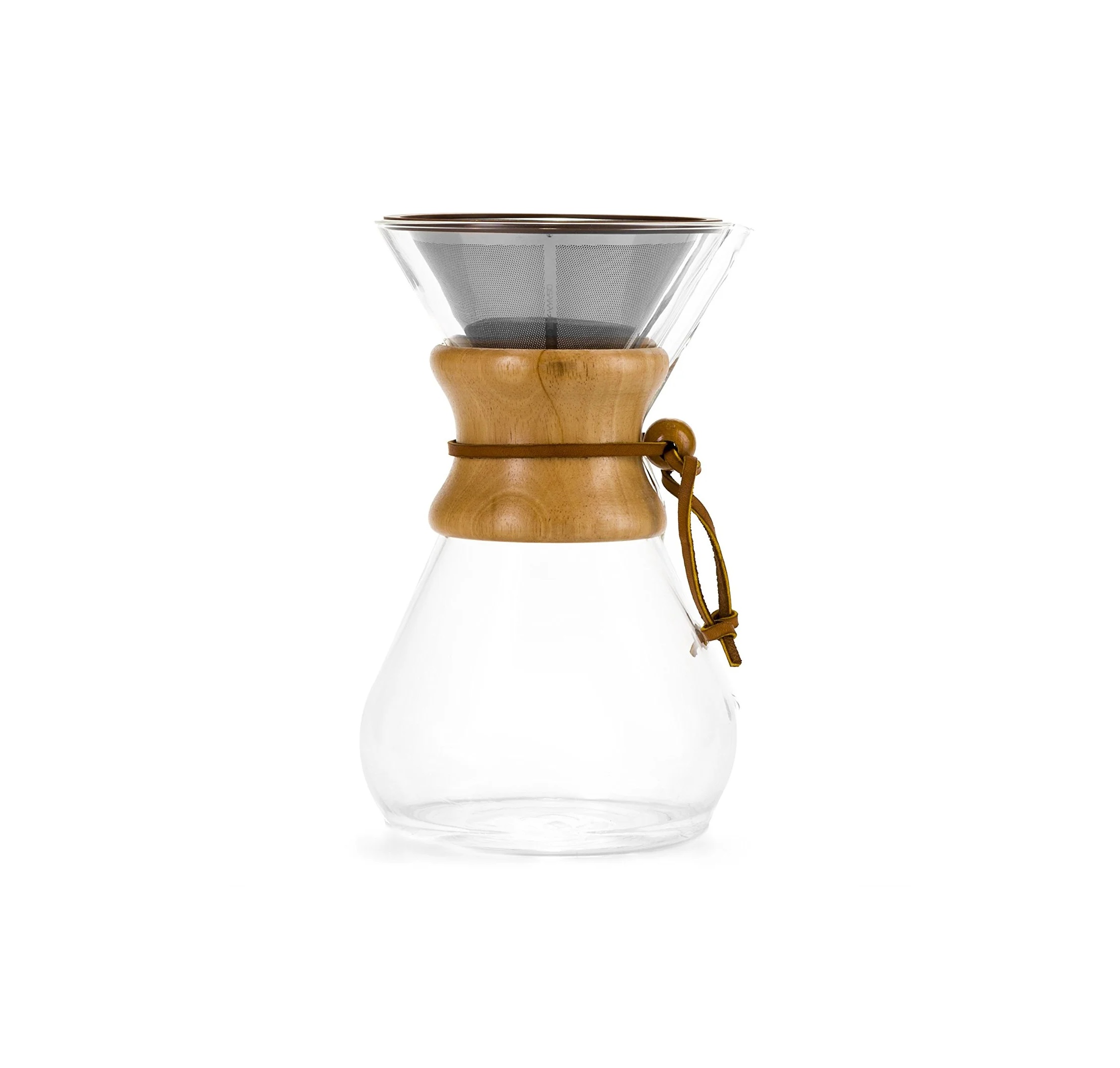 La Chemex de vidrio borosilicato con asa de bambú y capacidad de 800 ml es la elección perfecta para una experiencia de café refinada y ecológica. Su construcción en vidrio borosilicato asegura una resistencia excepcional al calor y una claridad impecable, mientras que el asa de bambú añade un toque natural y elegante. Además, incluye un filtro de acero inoxidable como extra, que permite un perfil de extracción diferente al de los filtros de papel, ofreciéndote la versatilidad de dos métodos en uno. Con capacidad para preparar hasta 800 ml de café, esta Chemex combina diseño funcional con estilo sofisticado, permitiéndote disfrutar de una infusión limpia y deliciosa en cada taza. ¡Eleva tu ritual del café con la elegancia y el rendimiento de nuestra Chemex de vidrio borosilicato con asa de bambú!