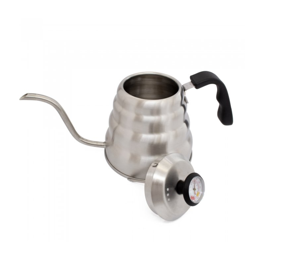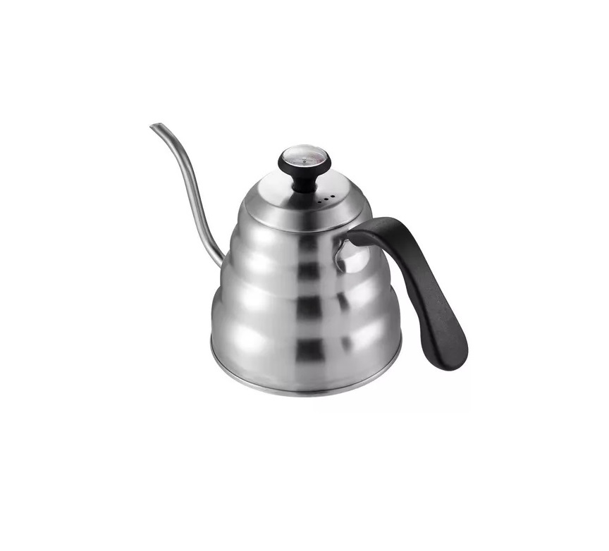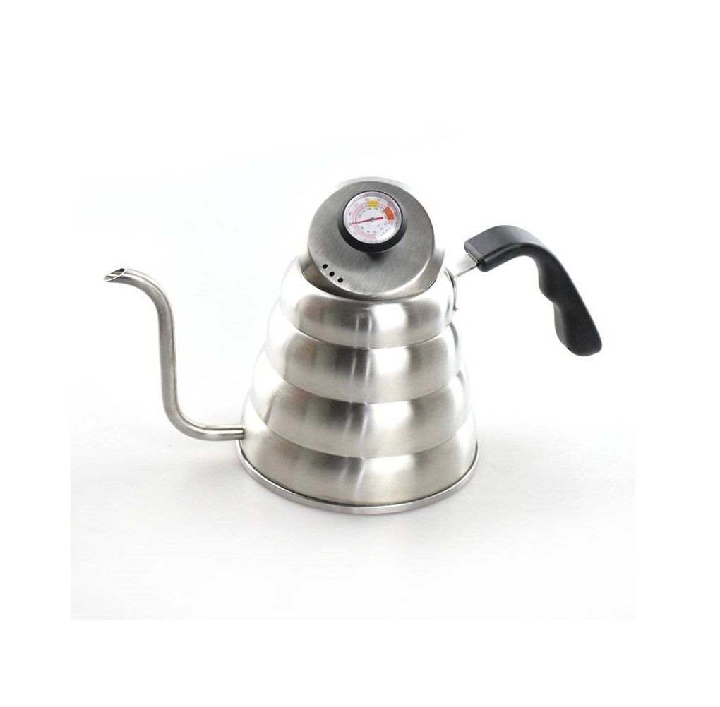 El cuello de cisne de 1200 ml con termómetro incluido es la herramienta perfecta para los aficionados al café que buscan precisión y control en cada preparación. Su diseño elegante en acero inoxidable garantiza durabilidad y una excelente retención del calor, mientras que el termómetro integrado te permite medir la temperatura del agua con exactitud, esencial para lograr una extracción perfecta. Con una capacidad de 1 litro, es ideal para preparar varias tazas de café a la vez. Su cuello de cisne permite un vertido preciso, ideal para técnicas como el «pour over». ¡Optimiza tu ritual del café y asegura resultados excepcionales con nuestro sofisticado cuello de cisne con termómetro!