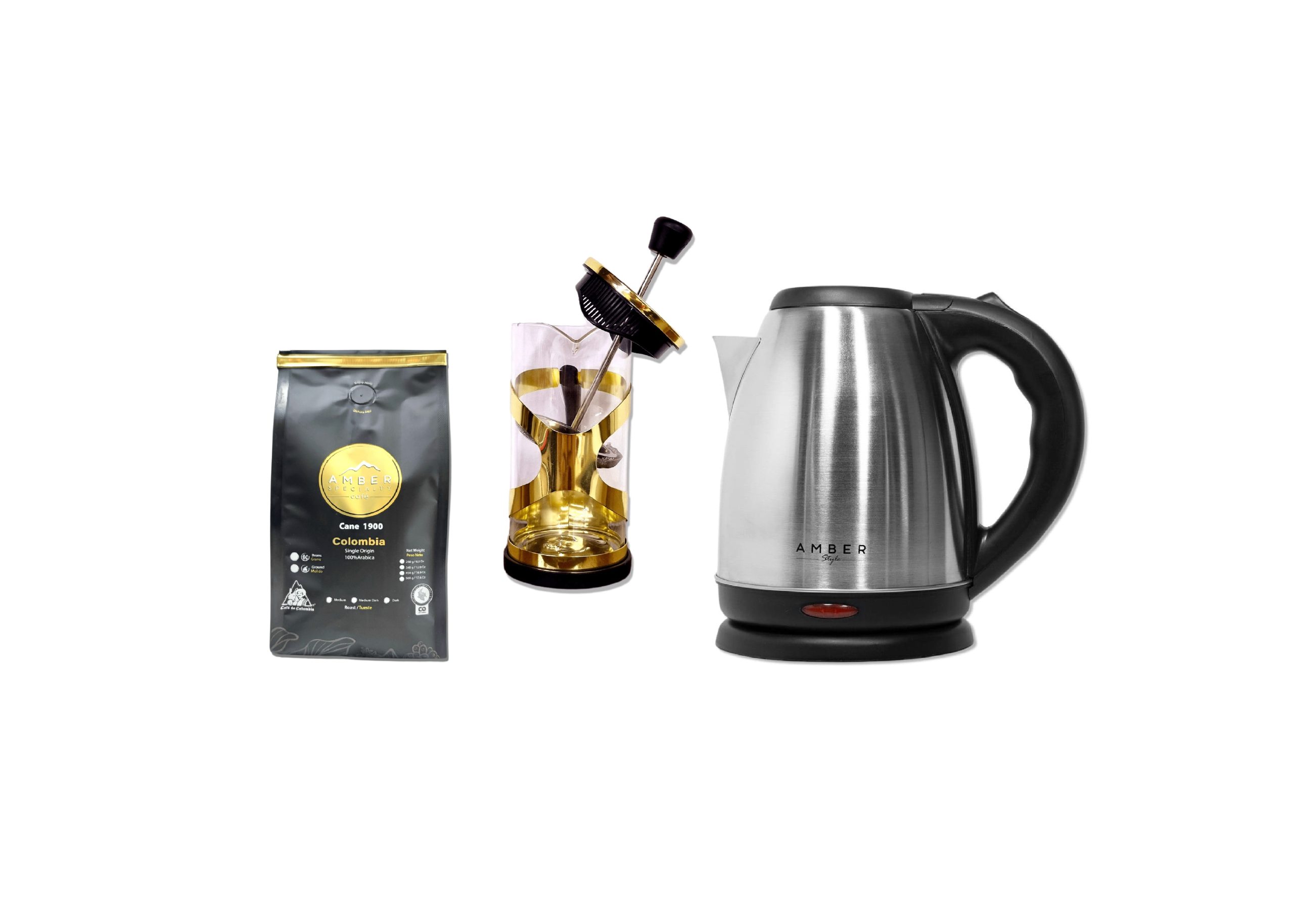 Hervidor 1,8 L + Prensa Francesa de Lujo 600 ml + Café Cane 250 g