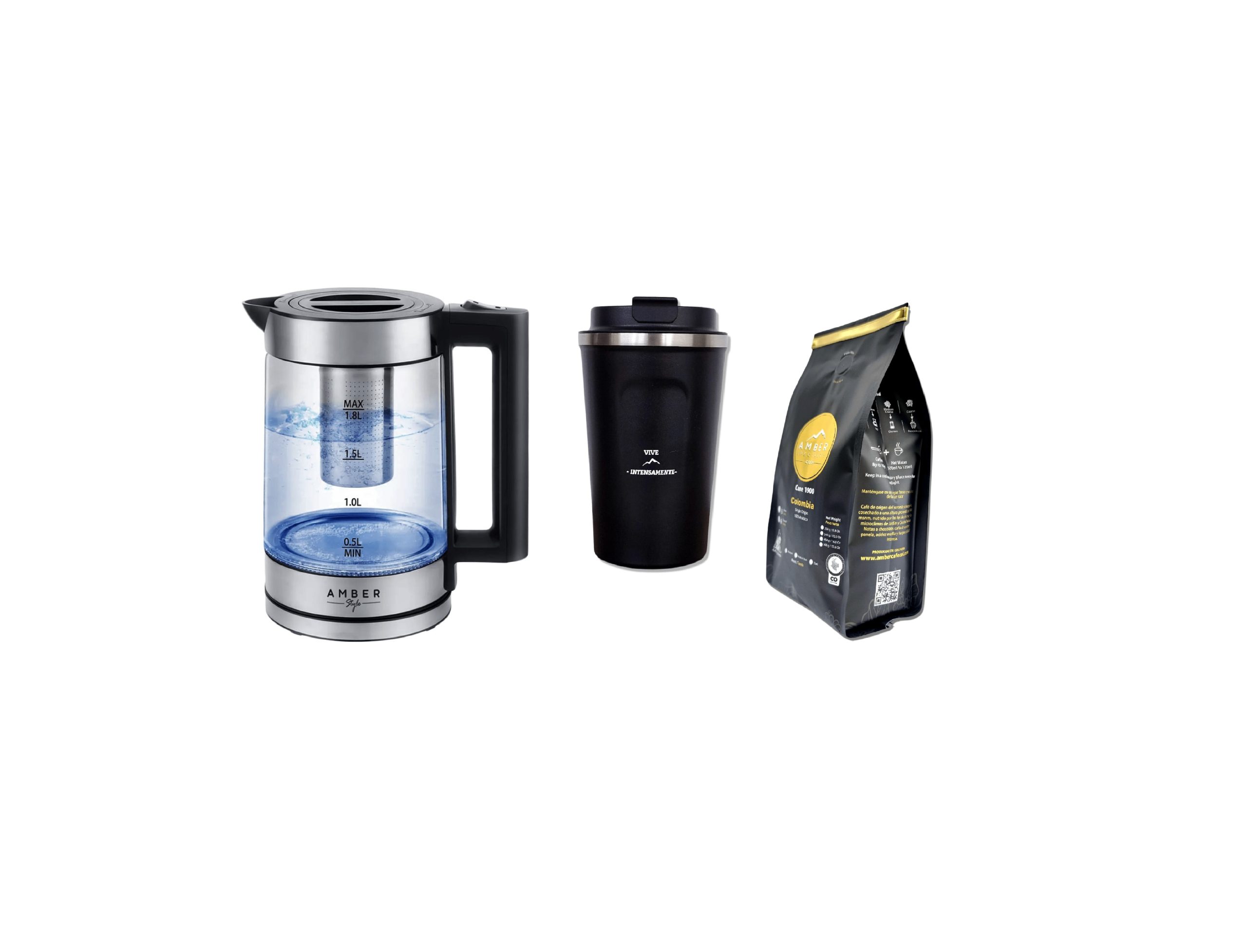 Hervidor de Vidrio 1,8 L + Termo 380 ml + Café Cane 250 g